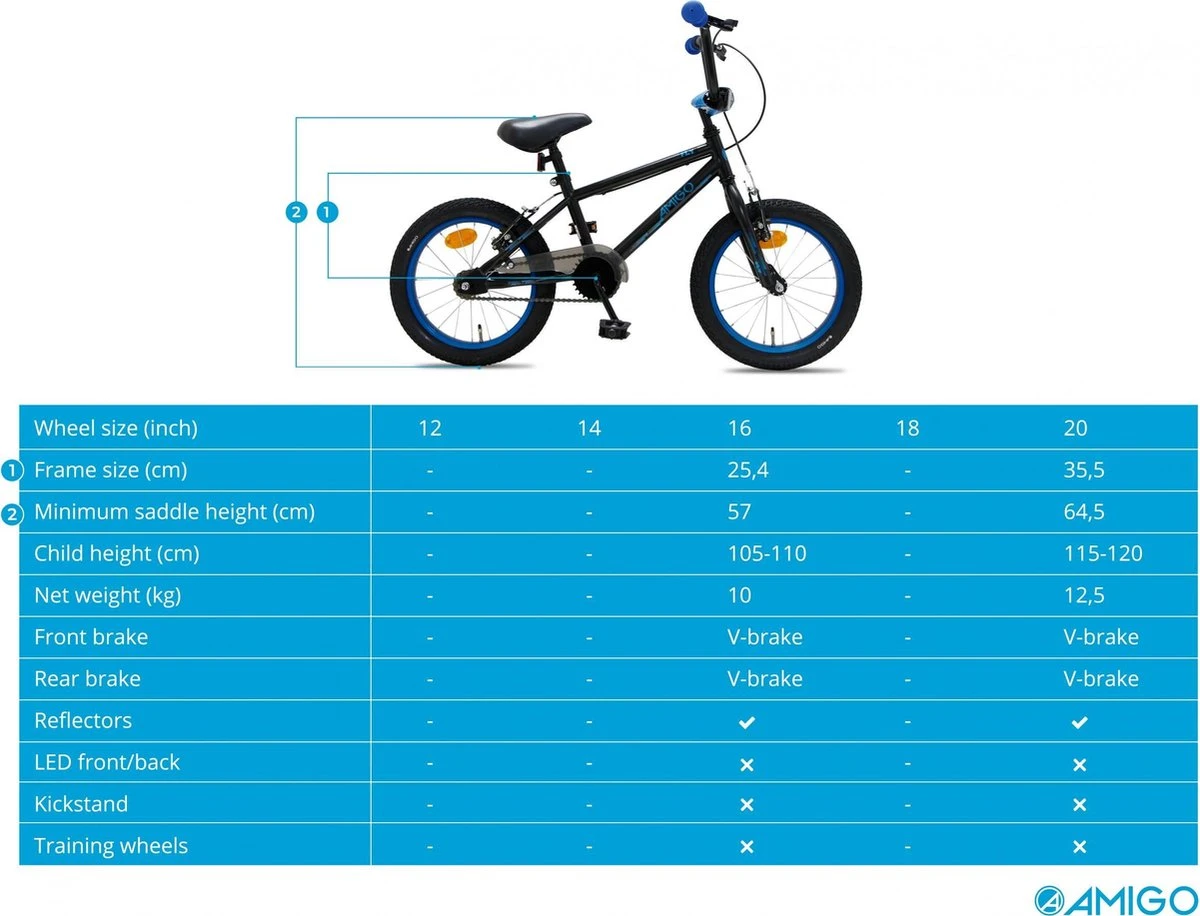 Bij Amigo hebben we een fietsmaatje voor iedereen! Echt Nederlands ontwerp, en dat voor een zeer vriendelijke prijs. Met deze BMX fietsen gaan kinderen hun eerste stunts maken. De BMX fietsen hebben een stabiel frame en zijn verkrijgbaar in verschillende kleuren en verschillende bandenmaten. Wordt Amigo jouw nieuwe beste vriend?