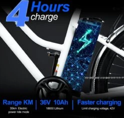 Hitway Elektrische Fiets | E-bike Damesfiets | 26 Inch | 250W Motor | Wit