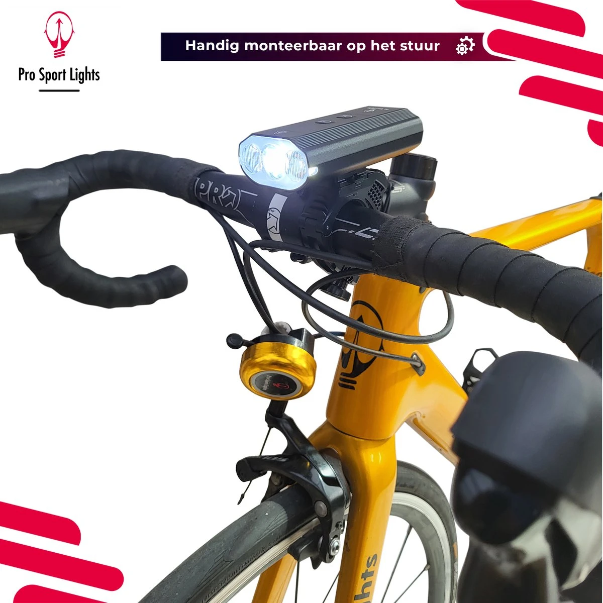 Pro Sport Lights Performance fietsverlichting met een vermogen van 1200 Lumen garanderen we je dat je zal zien en gezien worden in het verkeer.