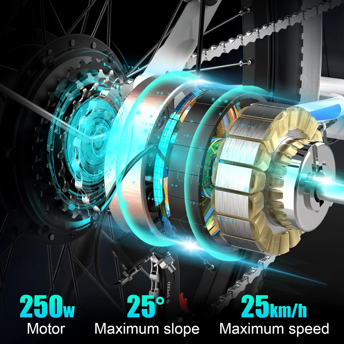 – Hellingen tot 25° zijn geen probleem voor de krachtige 250W motor