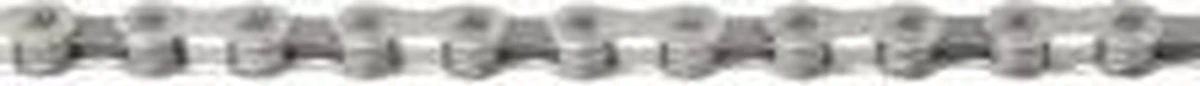 1/2″ X 11/128″ Pin Lengte: 6.6 mm 114 Schakels Gewicht: 288 gram Kleur: Zilver Hi-Performance Double X-Durability Niet looprichting gebonden Shimano, Campagnolo en SRAM 9-speed derailleur systemen De KMC X9 Silver is de opvolger van de X9.93 ketting