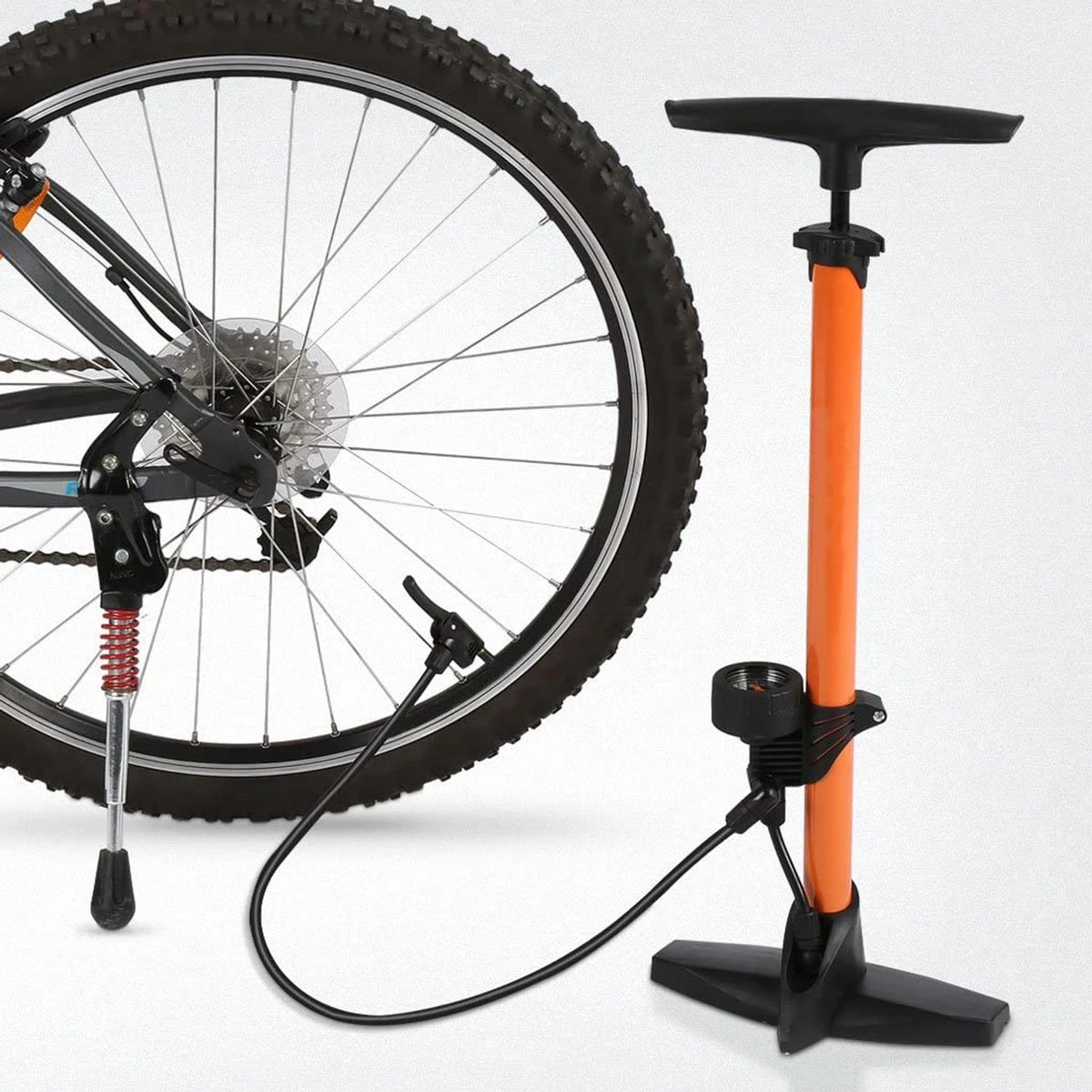 De fietspomp is uitgerust met een ergonomisch handvat en stevige voet. De pomp trekt zichzelf uit tot op precies de juiste hoogte zodat jij gemakkelijk kan pompen. De luchtslang is 65 centimeter lang en hierdoor lang genoeg zodat jij zonder teveel moeite kan oppompen.