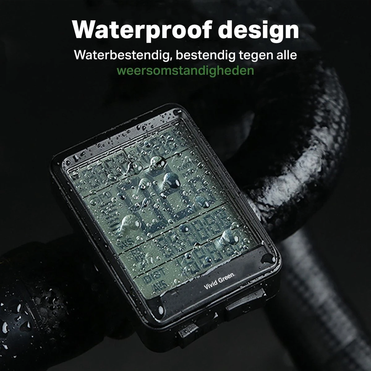 Gelukkig is onze Fietscomputer niet van suiker gemaakt en kan je hem gerust in een hoosbui gebruiken. Je hoeft niet te plannen om te gaan fietsen als het droog is, je kunt altijd op pad gaan.