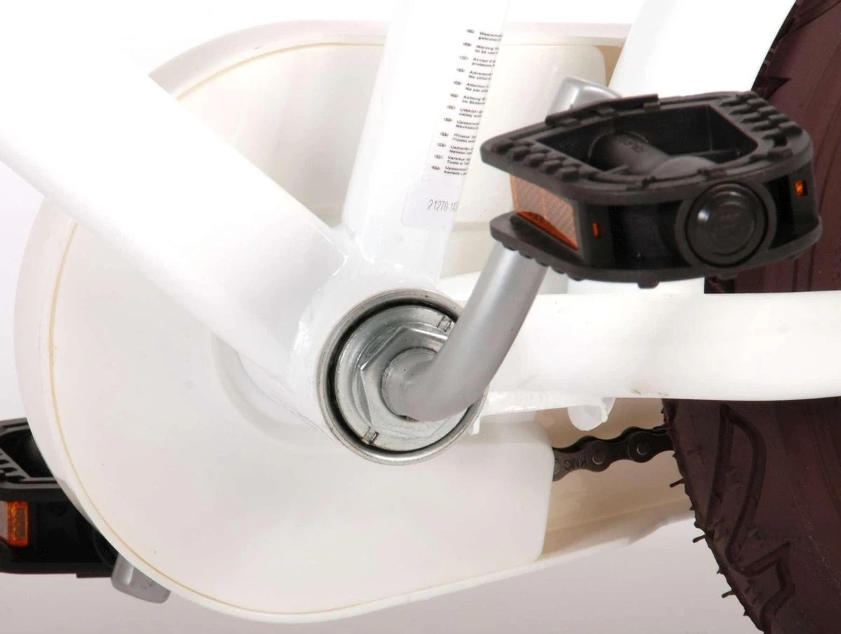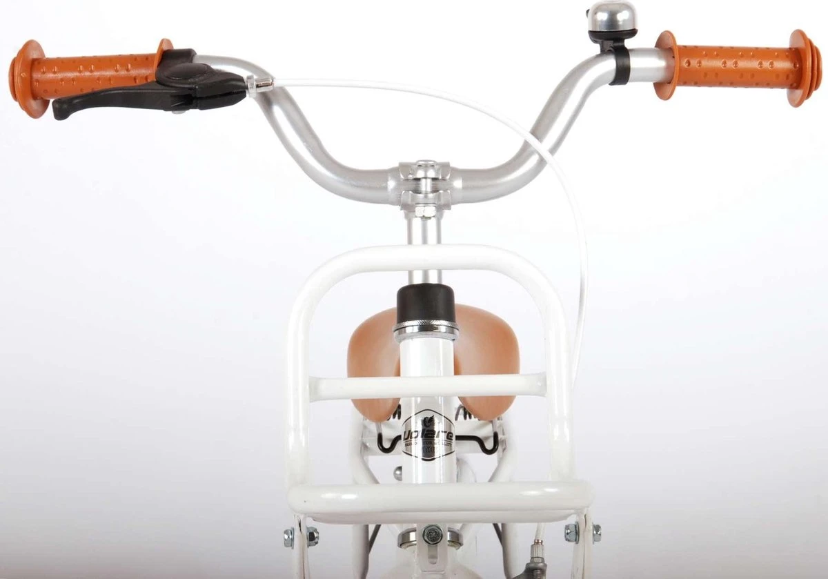 Volare Liberty 12 inch kinderfiets. Deze prachtige Volare Liberty kinderfiets is geliefd onder alle jonge meiden. De achterdrager van de fiets is geïntegreerd in het frame, waardoor de fiets een strak en modern uiterlijk heeft. Het zadel en stuur zijn beide in hoogte verstelbaar, dit zorgt ervoor dat de fiets met uw kindje mee kan groeien. Met de handrem en terugtraprem kan vaart worden geminderd. De fiets beschikt over zowel een voordrager als achterdrager, zodat ieder meisje haar spulletjes gemakkelijk mee kan nemen. Het zachte zadel en de handvaten zorgen voor extra comfort en ter bescherming van de kleine vingertjes is de kettingkast gesloten. Bovendien heeft de fiets een fietsbel om aan iedereen te kunnen laten weten dat je de hoek om komt. Met de afneembare zijwieltjes kan ieder kind snel leren fietsen. Deze fiets is voor 95% afgemonteerd, waardoor hij al bijna fietsklaar is. Zoefff, daar gaat je kindje, naar zijn vriendjes en vriendinnetjes!