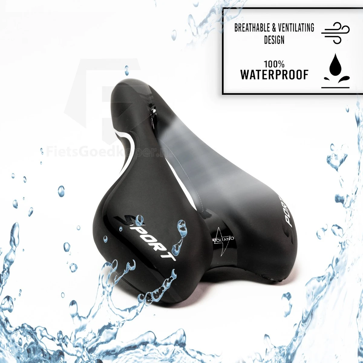 Dit fietszadel is van hoge kwaliteit en 100% Waterdicht. Ook heeft dit fietszadel een gestroomlijnd en modern ontwerp. Dit fietszadel is licht in gewicht hierdoor voelt het zadel niet als extra gewicht tijdens het fietsen. Het fietszadel is dik, elastisch, comfortabel en ademend waardoor het aangenaam is om op te zitten. Doordat het fietszadel uit polyurethaan, leer en staal bestaat is deze gemakkelijk schoon te maken mocht er viezigheid op komen. Door het unisex ontwerp is dit fietszadel geschikt voor zowel mannen als vrouwen.